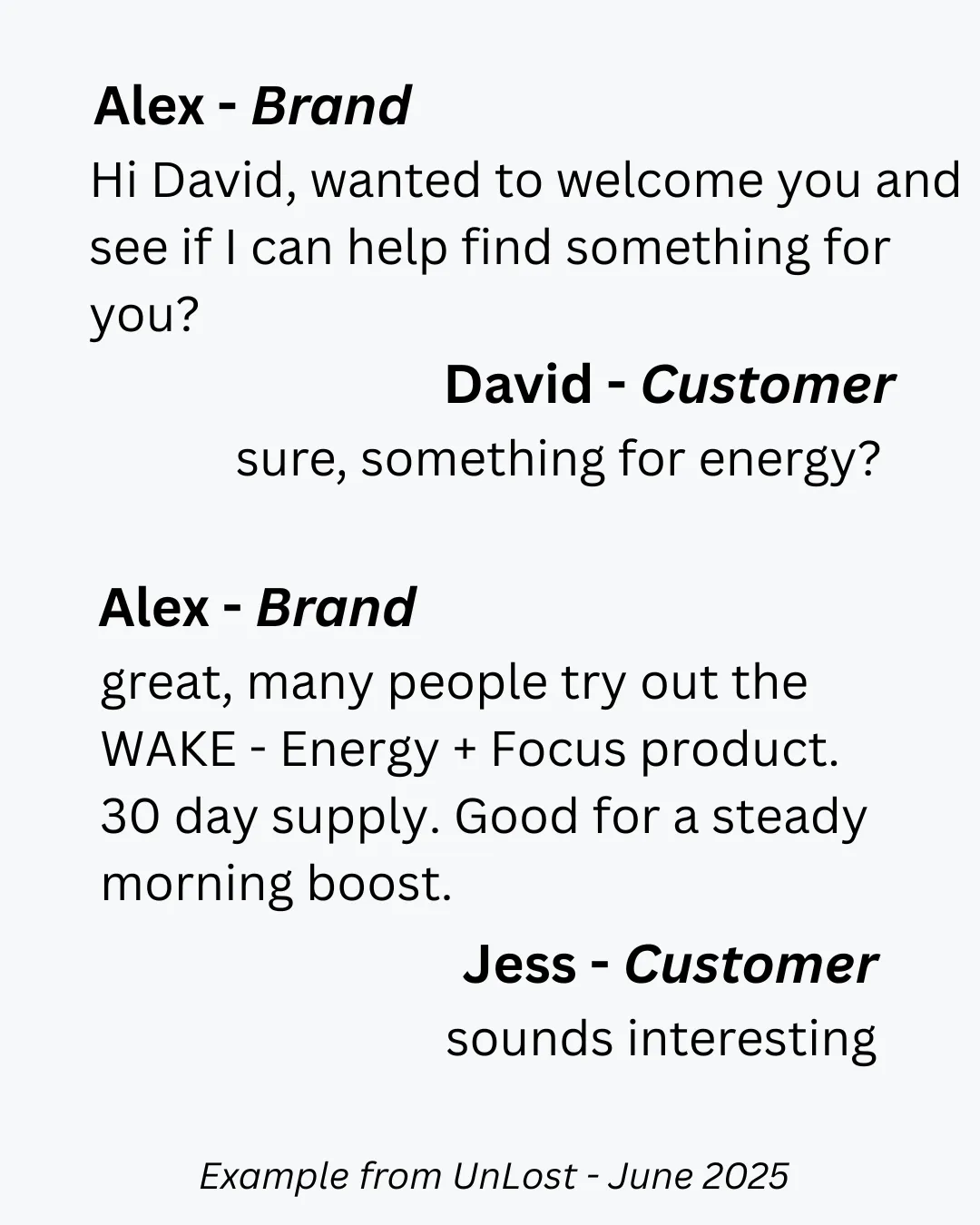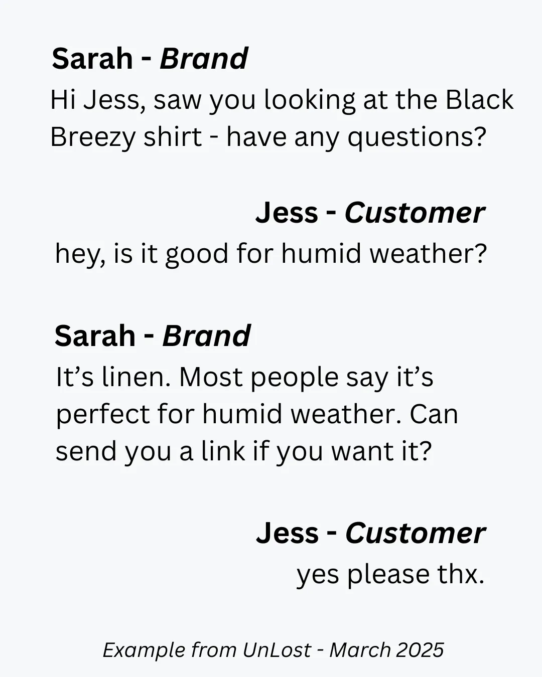 The shopper left a candle in their cart. We start a conversation, answers their questions, they order.